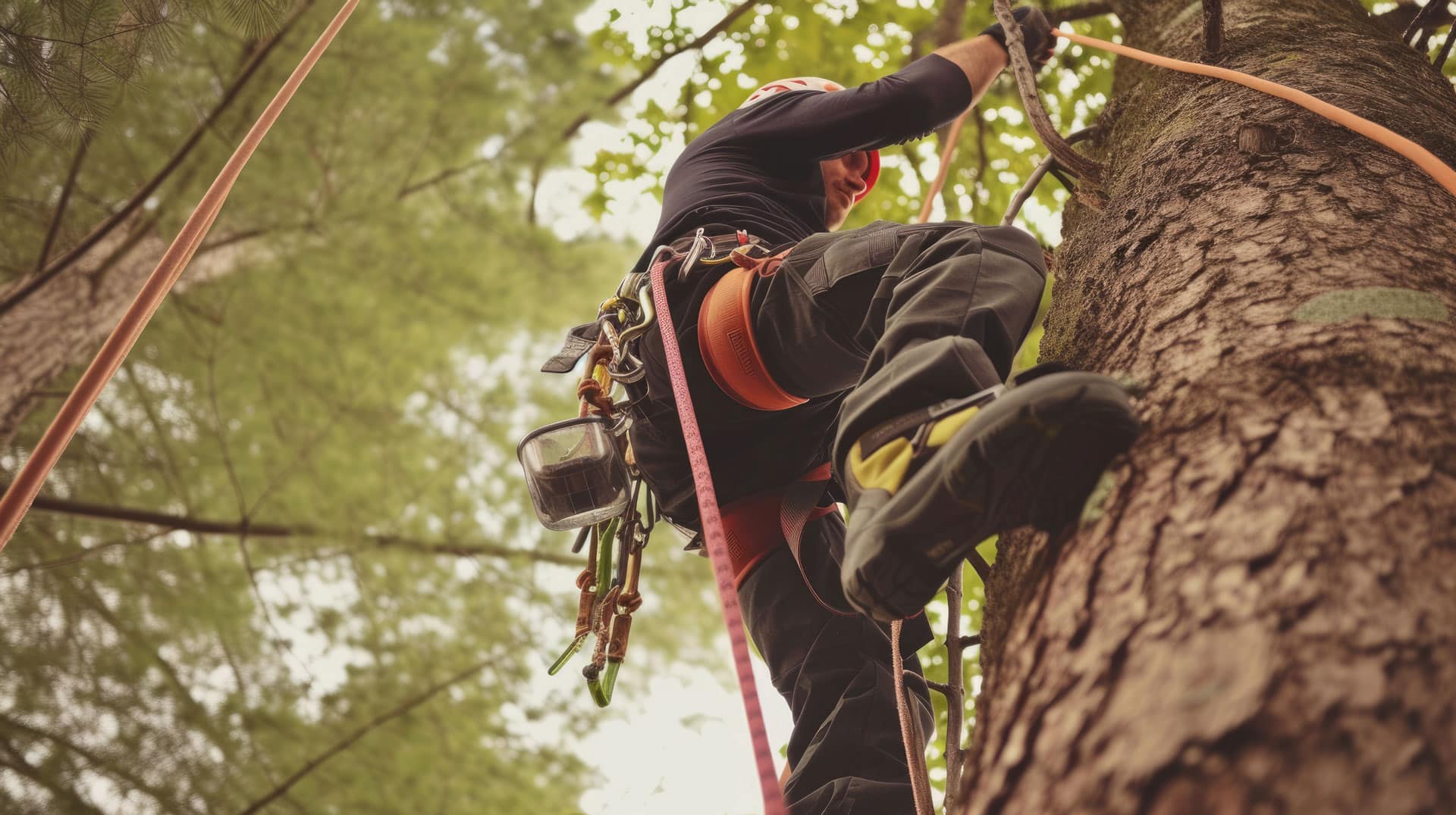 Nos équipes sont formées aux techniques de grimpe et de cordage, ce qui nous permet d’intervenir là où les engins ne passent pas. Qu’il s’agisse d’un arbre en pente, en lisière de forêt ou en plein cœur d’un jardin urbain, nous avons la solution adaptée.